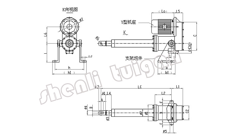 電動推桿的外接的行程裝置,電控箱和支撐架由顧客自備,如需要,我公司可代為配制,但應在訂貨合同中寫明。 |